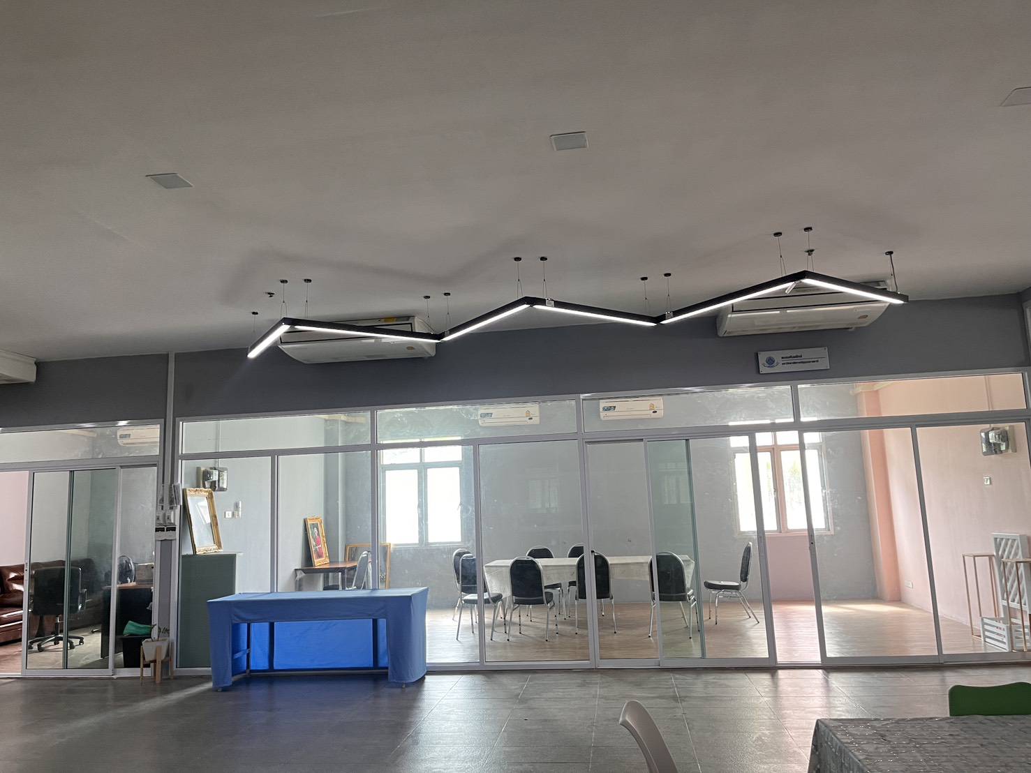 พื้นที่สำหรับจัดประชุม ทำรายงาน หรือติวหนังสือเป็นกลุ่ม พร้อมหน้าจอสมาร์ททีวีและกระดานไวท์บอร์ด