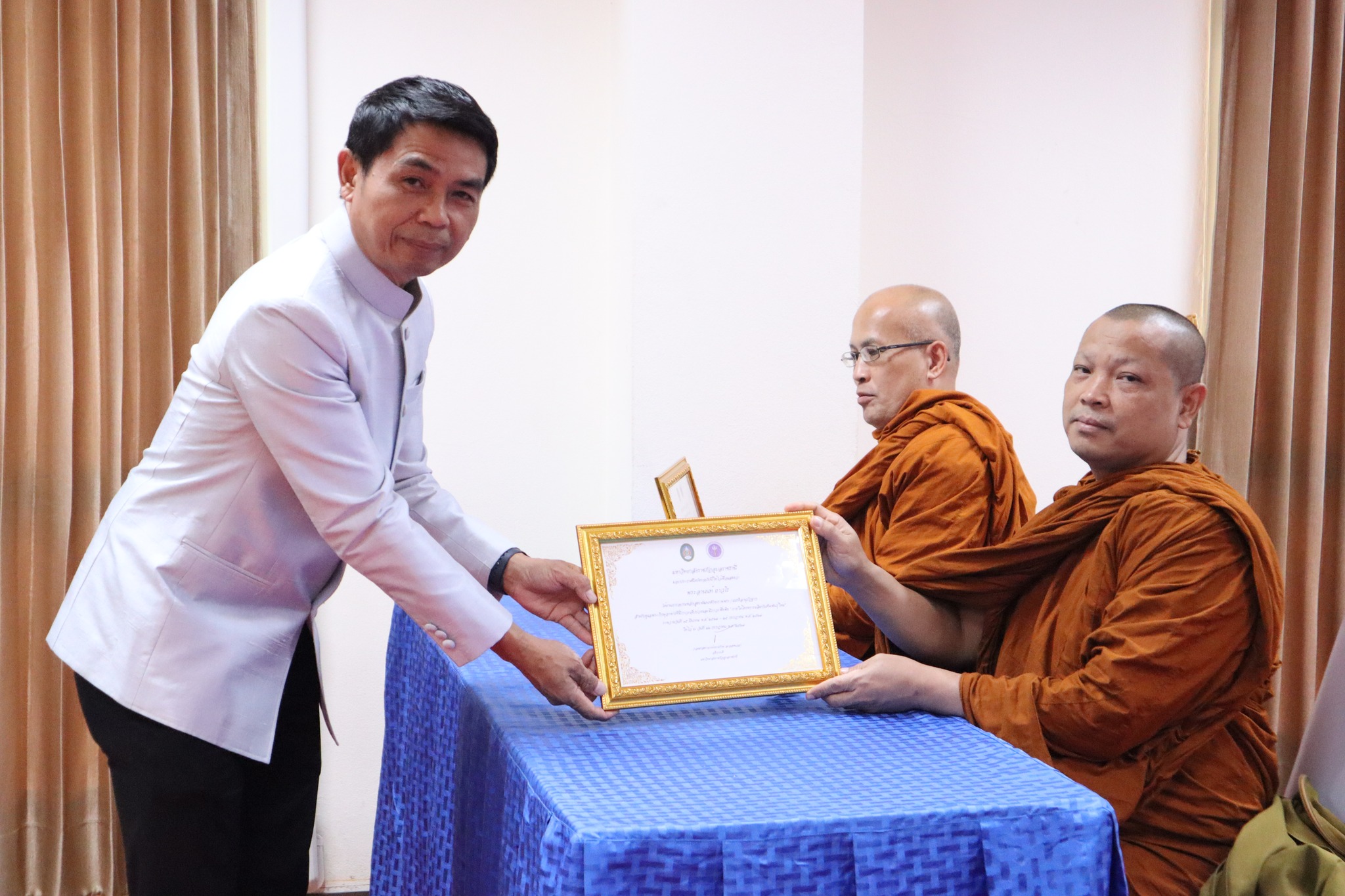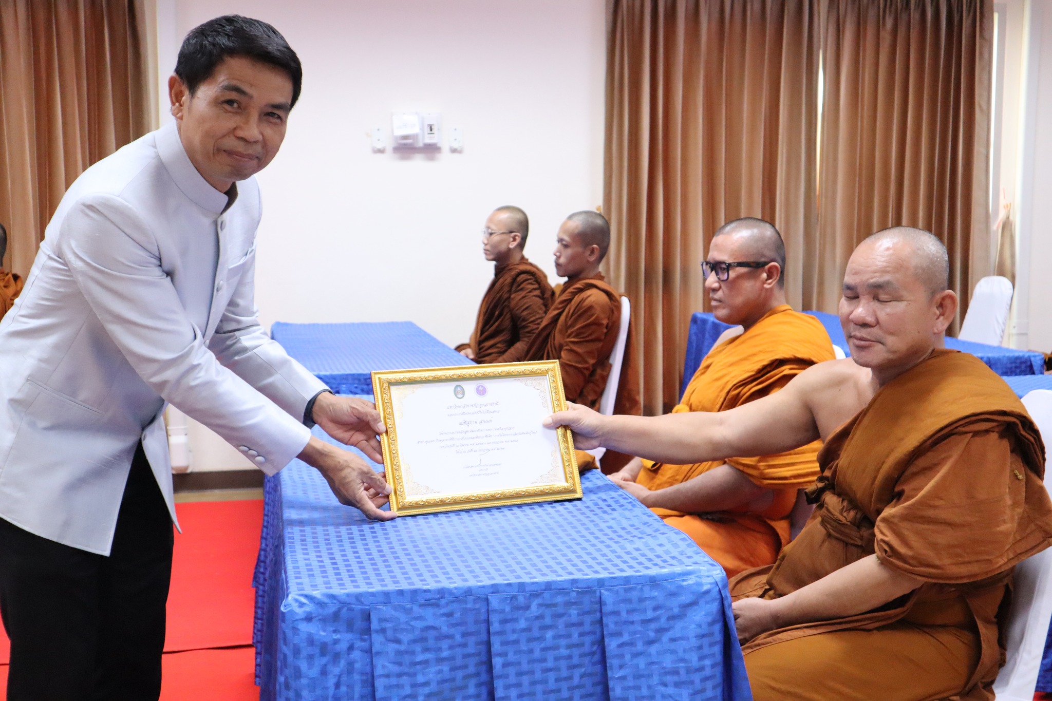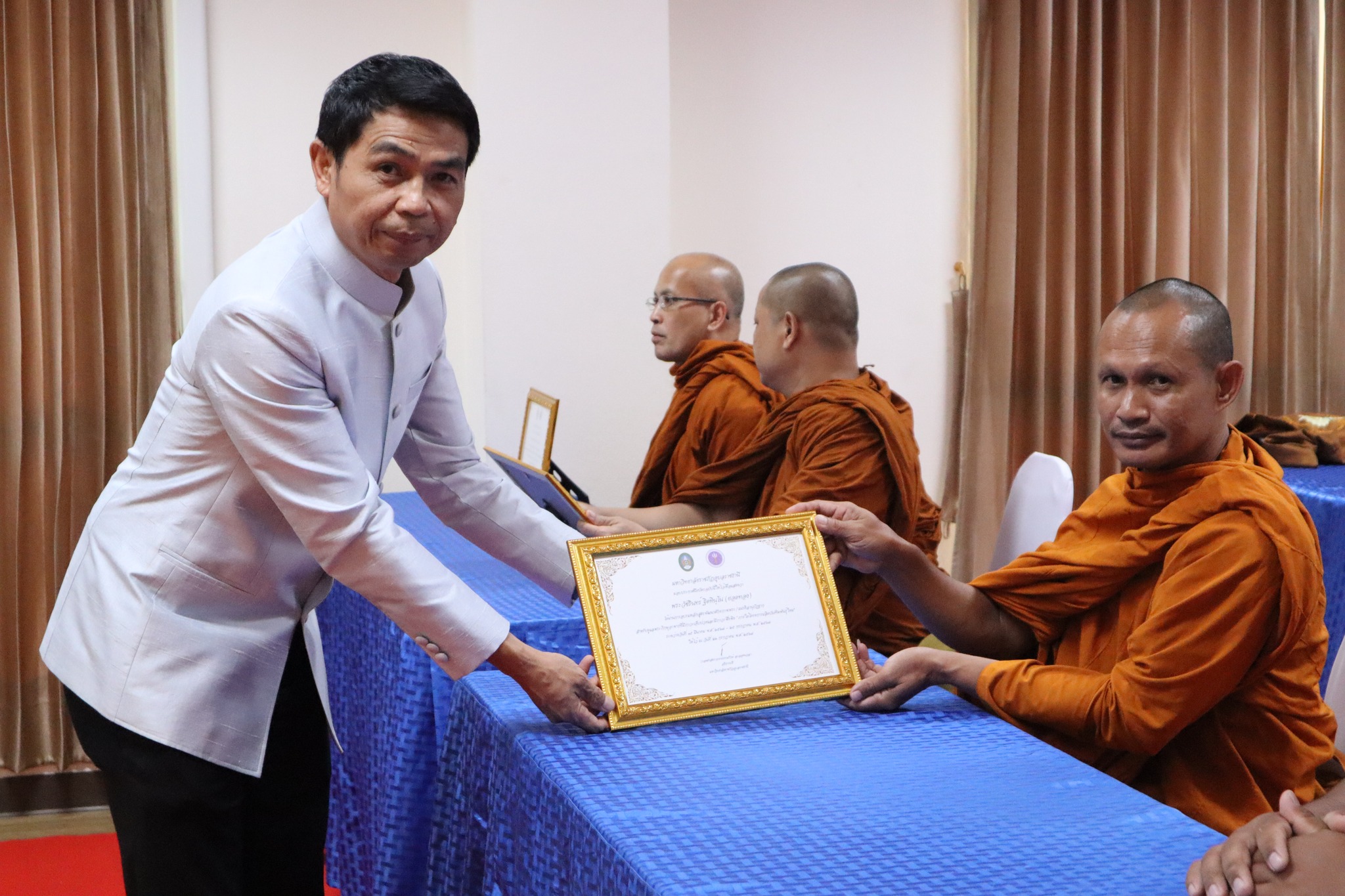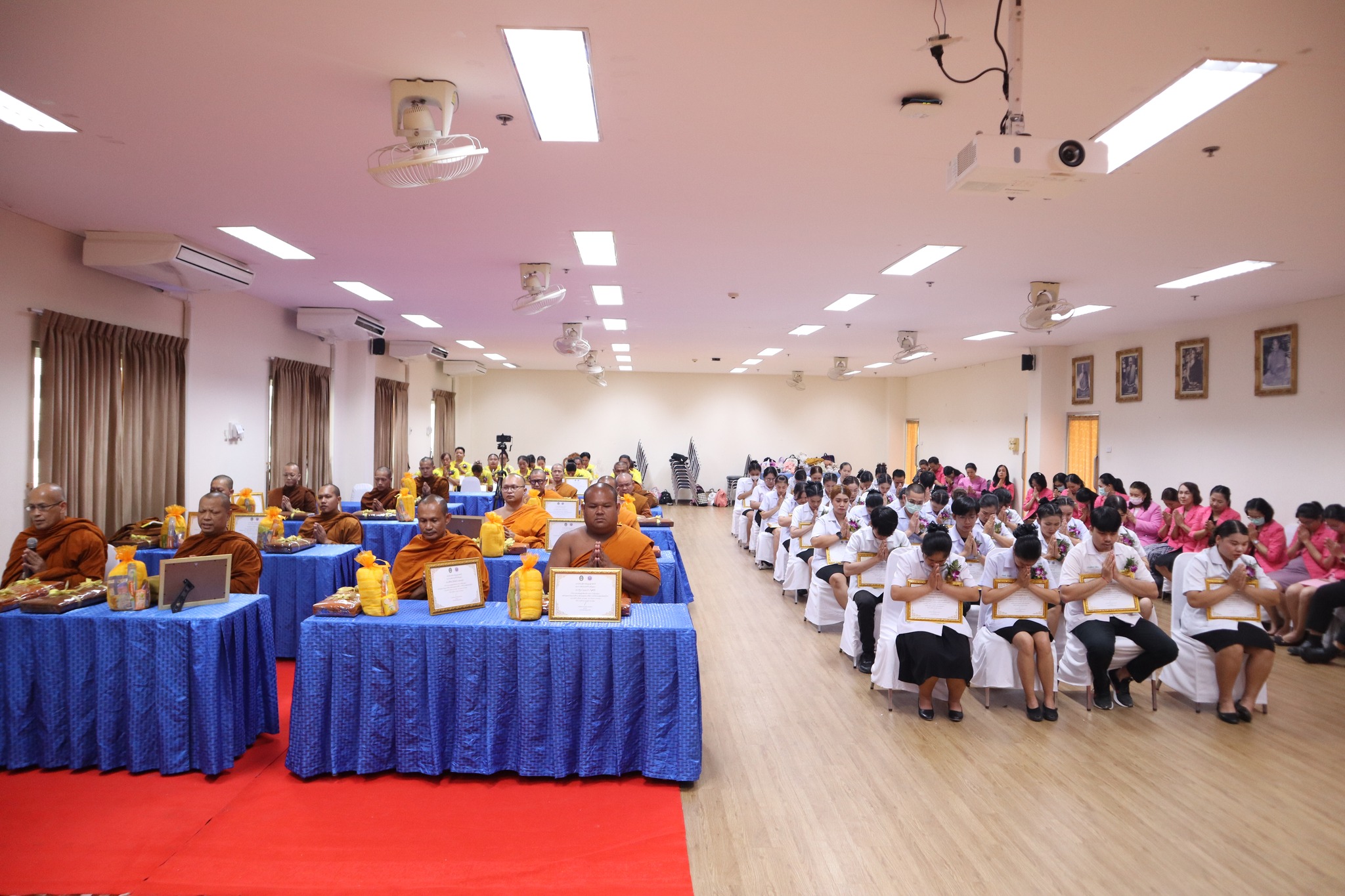 พิธีมอบประกาศนียบัตรผู้ผ่านการอบรมหลักสูตร “การพัฒนาศักยภาพพระ/เณรคิลานุปัฏฐาก สำหรับการดูแลพระภิกษุอาพาธที่มีภาวะเจ็บป่วยและมีภาวะพึ่งพิง” หลักสูตร“การพัฒนาสมรรถนะผู้ดูแลสุขภาพเบื้องต้นของผู้ป่วยที่เจ็บป่วยด้วยโรคที่ไม่ยุ่งยากซับซ้อน” ภายใต้โครงการผลิตบัณฑิตพันธุ์ใหม่ ปี พ.ศ. ๒๕๖๗ -- วันที่ ๒๖ กรกฎาคม ๒๕๖๗ คณะพยาบาลศาสตร์ จัดพิธีมอบประกาศนียบัตรผู้ผ่านการอบรมหลักสูตร “การพัฒนาศักยภาพพระ/เณรคิลานุปัฏฐาก สำหรับการดูแลพระภิกษุอาพาธที่มีภาวะเจ็บป่วยและมีภาวะพึ่งพิง” และหลักสูตร“การพัฒนาสมรรถนะผู้ดูแลสุขภาพเบื้องต้นของผู้ป่วยที่เจ็บป่วยด้วยโรคที่ไม่ยุ่งยากซับซ้อน” ภายใต้โครงการผลิตบัณฑิตพันธุ์ใหม่ ปี พ.ศ. ๒๕๖๗ โดยมี ผู้ช่วยศาสตาจารย์ศักดา บุญยืด รองอธิการบดี เป็นประธานในพิธีและมอบใบประกาศนียบัตรในครั้งนี้ ณ ห้อง ๕๒.๔๐๓ อาคารวิทยาศาสตร์สุขภาพ มหาวิทยาลัยราชภัฏอุบลราชธานี